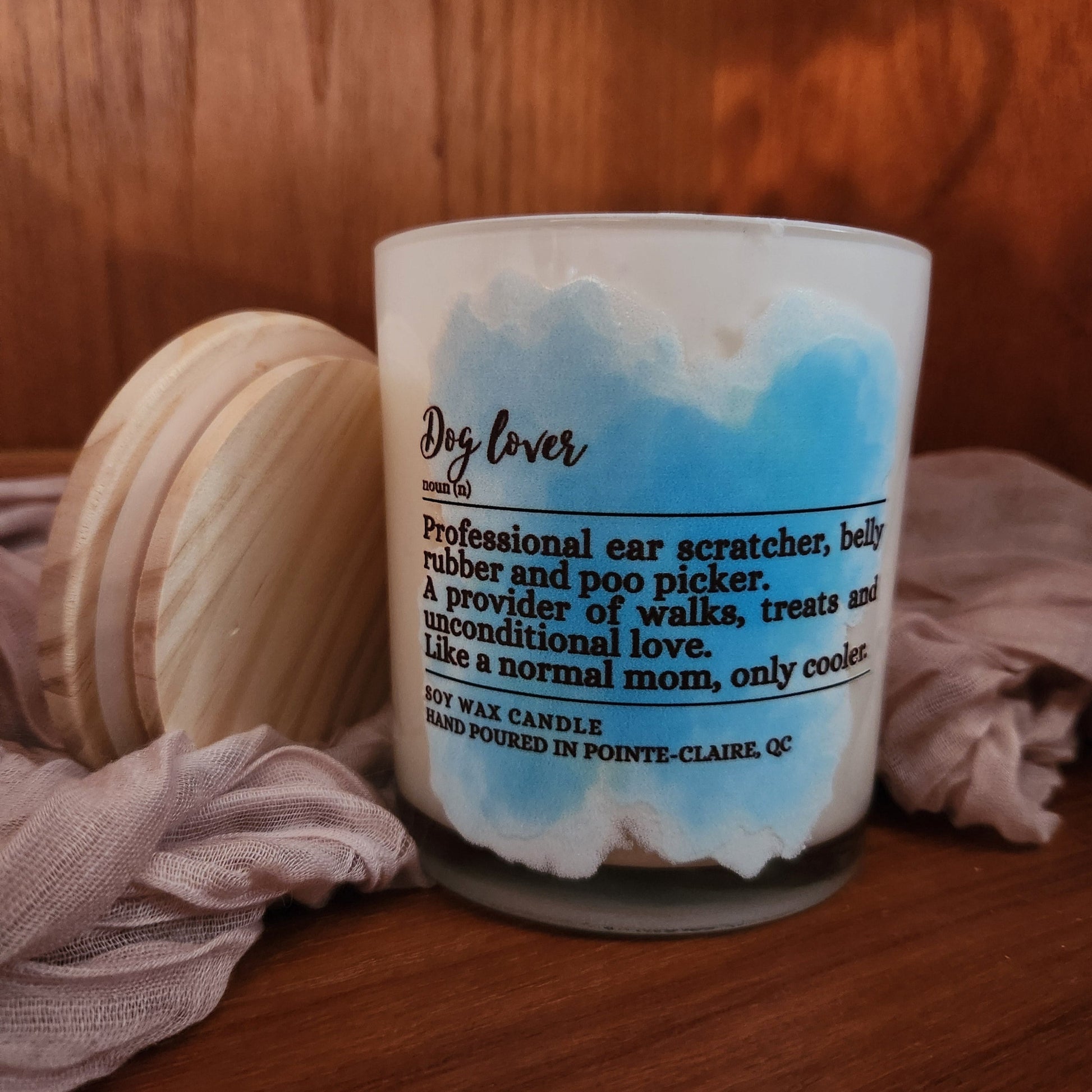 Show your love for all things canine with our Dog Lover soy wax candle - label!